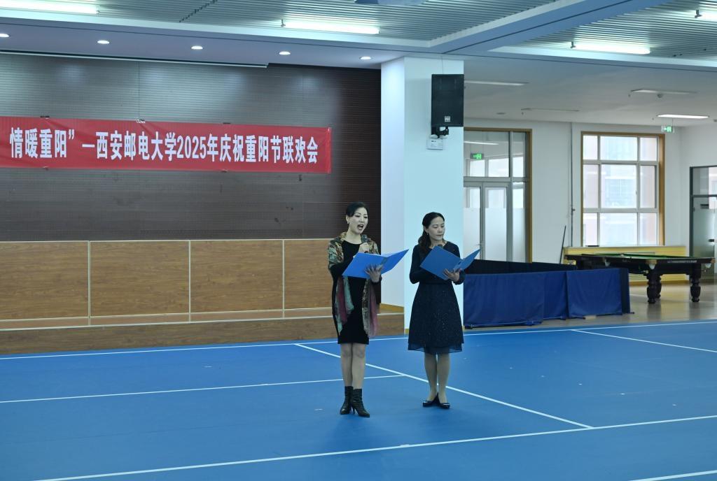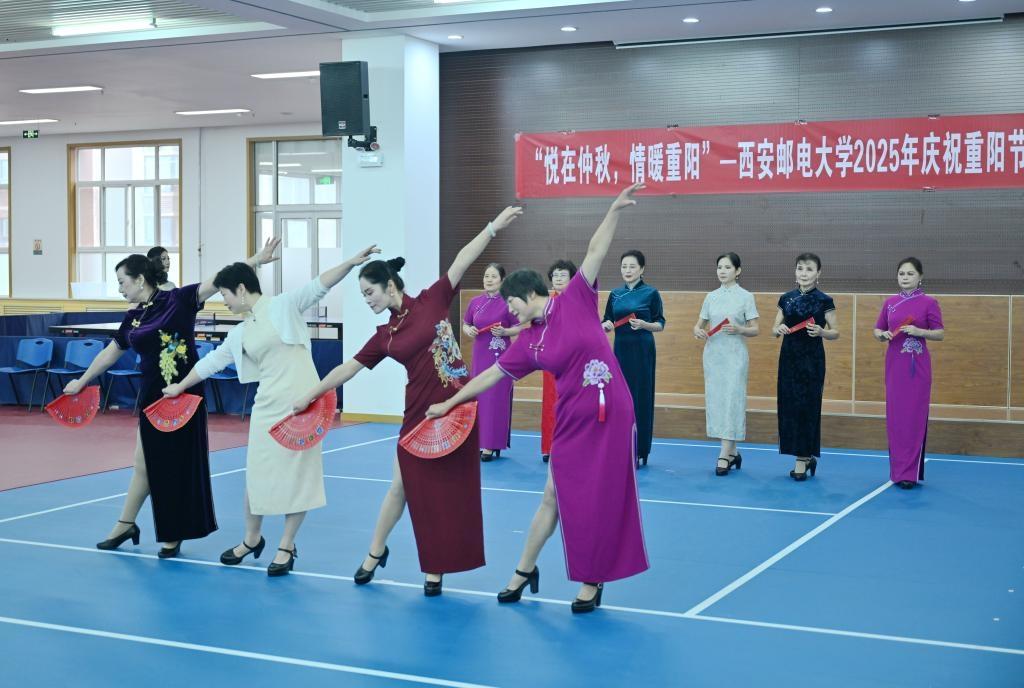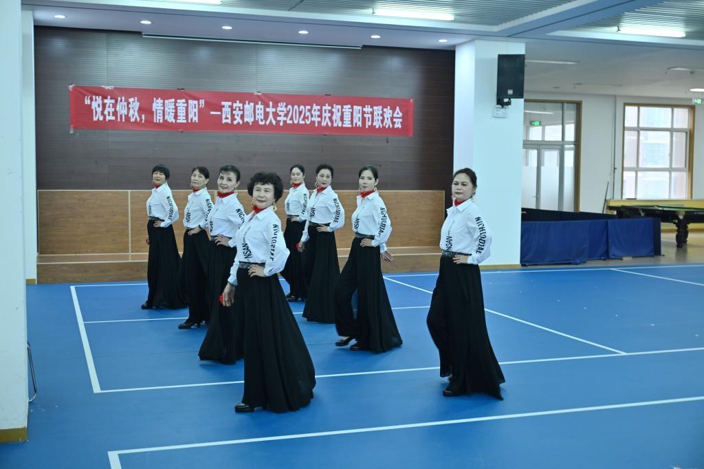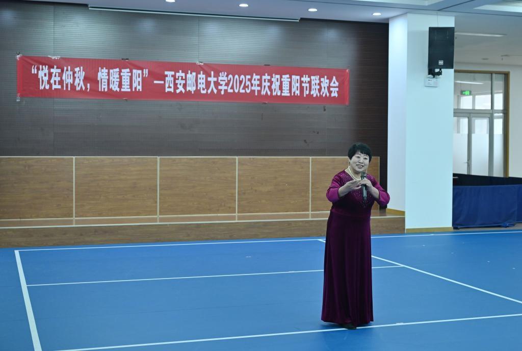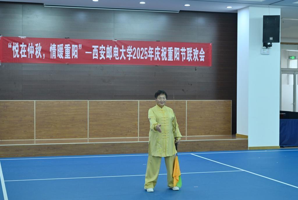 联欢会在舞蹈队乔文智、张艳华等带来的《万泉河水清又清》中拉开帷幕,优美的舞姿瞬间点燃现场气氛。健身操队潘颖遐、林康华演绎的水兵舞《世界赠予我的》活力满满;朗诵班张晓红朗诵的《不朽》情感真挚,引人共鸣;太极拳队张玲、库瑞等展示的太极扇《中国功夫》刚柔并济,尽显中华武术魅力;陈冬红、李玲枝等带来的豫剧《亲家母》韵味十足;西邮学生舞蹈队表演的《用青春致敬》则展现了青春与敬老的美好交融;模特队马武玲、宗时春等带来的《对面的小姐姐》走秀优雅大方;朱秀英演唱的豫剧《花木兰》婉转动人;经济与管理学院辅导员孟祥新的独唱《故乡的云》饱含深情,勾起大家的思乡情怀;朗诵班崔永强、丁婕朗诵的《秋天里的中国》描绘出祖国秋日的壮美画卷;太极拳队张晓红展示的杨式太极刀行云流水;模特队潘颖遐、李雅莉等的旗袍秀《采薇》尽显东方古典美;器乐班薛顺根、李达群等带来的《彩云追月》《梁祝--化蝶》合奏旋律悠扬,令人沉醉。