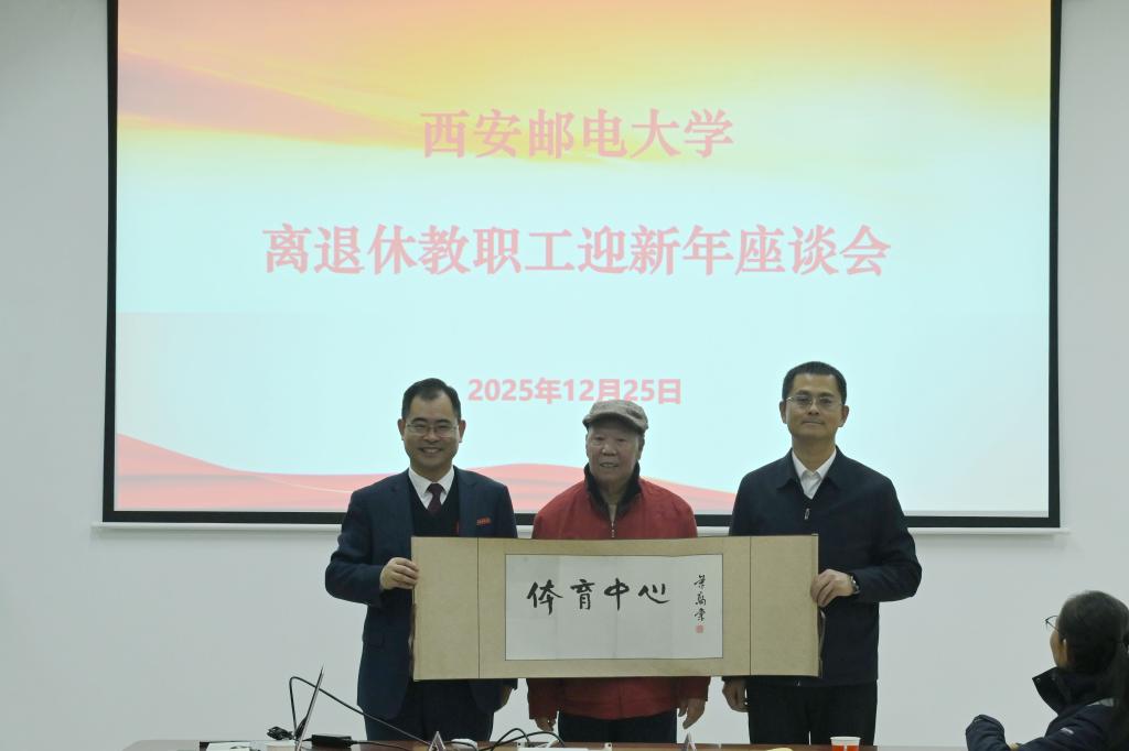 会上,离退休教职工代表畅所欲言,对学校一年来取得的显著成绩倍感自豪与振奋,并对学校改革发展提出意见建议。蔡世民老师向学校捐赠了原国家体委秘书长荣高棠为学校雁塔校区体育馆题写的“体育中心”字轴。会前,离退休教职工代表还参观了“复校四秩传薪火 光影逐梦忆初心”西安邮电大学恢复办学40周年图片展。